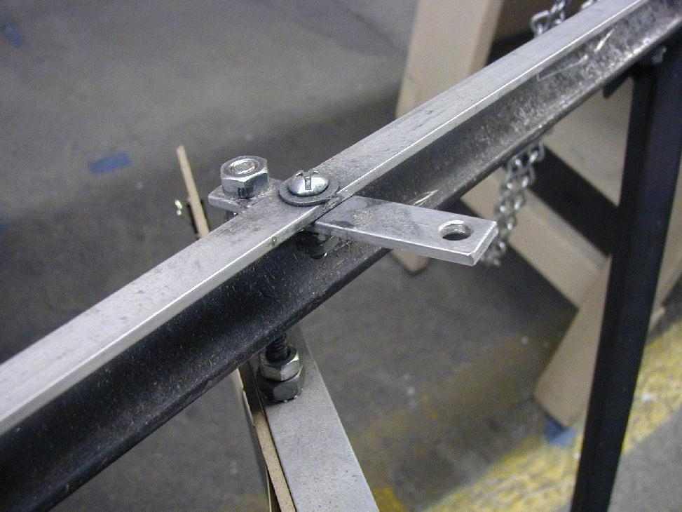 Here, a closeup is shown that includes the return spring at the end of the linking bar. Also note the brass bushing mounted into the tubular steel.